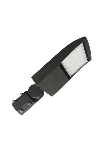 The 300W LED Shoebox Light with built-in photocell offers advanced, dependable outdoor lighting engineered for large-area applications. Equipped with a high CRI Lumileds chip and UL/cUL certification, it ensures accurate color rendering, reliable performance, and compliance with safety standards. Operating within a wide input voltage range of 120-277VAC, the fixture features an adjustable constant current through a 1-10V output cable, allowing precise dimming to suit specific lighting needs. This energy-efficient light provides soft, uniform illumination without UV or IR radiation, protecting eyes while delivering instant, flicker-free light. Designed for straightforward installation and long-lasting use, it is mercury-free and environmentally friendly. Ideal for outdoor sports courts, school playgrounds, stadiums, and community plazas, it combines durability with high-quality lighting to enhance visibility and safety across various expansive outdoor spaces.